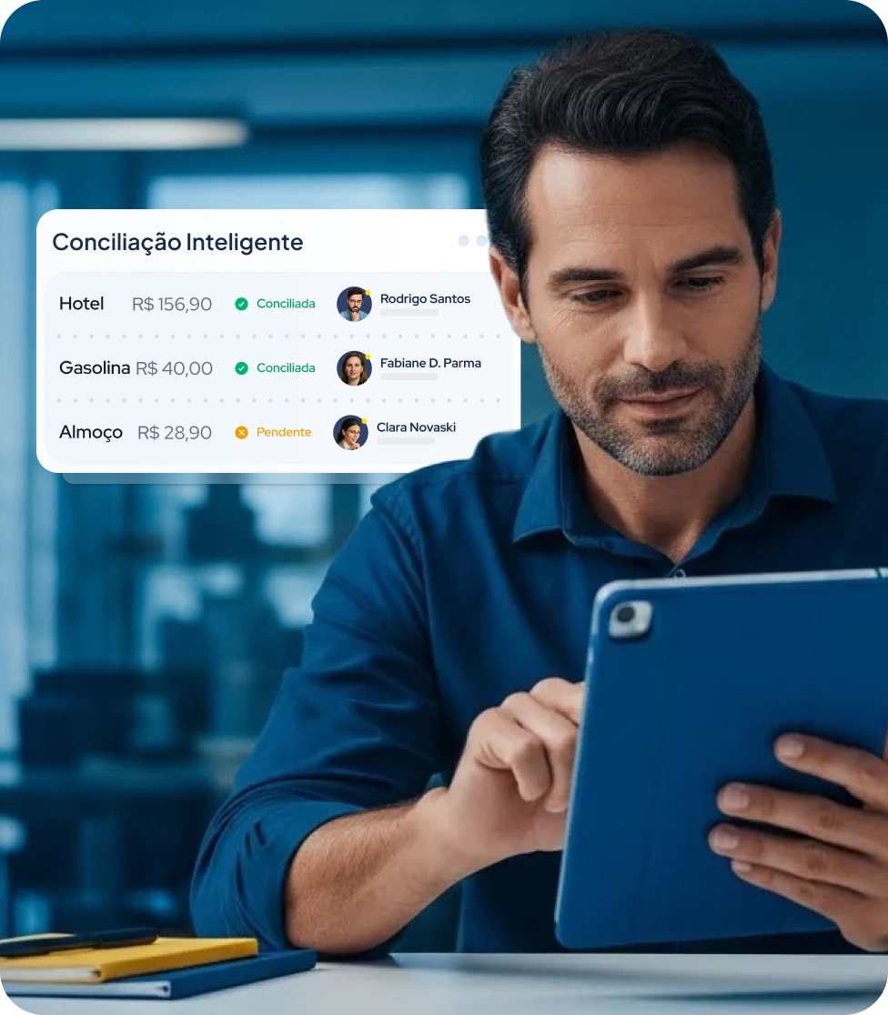 Automação de reembolsos, aprovações e conciliações.